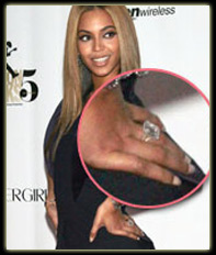 טבעת האירוסין של ביונסה לאחר 6 שנות זוגיות מתוקשרות וציפייה גדולה מצד המעריצים הציה האפר המפורסם ג'יי-זי לבת זוגו המפורסמת לא פחות נישואים. הטבעת שנרכשה תמורת סכום פעוט של 5 מיליון דולר מורכבת מיהלום ענק של 18 קראט. הטבעת נרכשה בחנות התכשיטים המפורסמת של לוריין שוורץ בשדרה החמישית. |