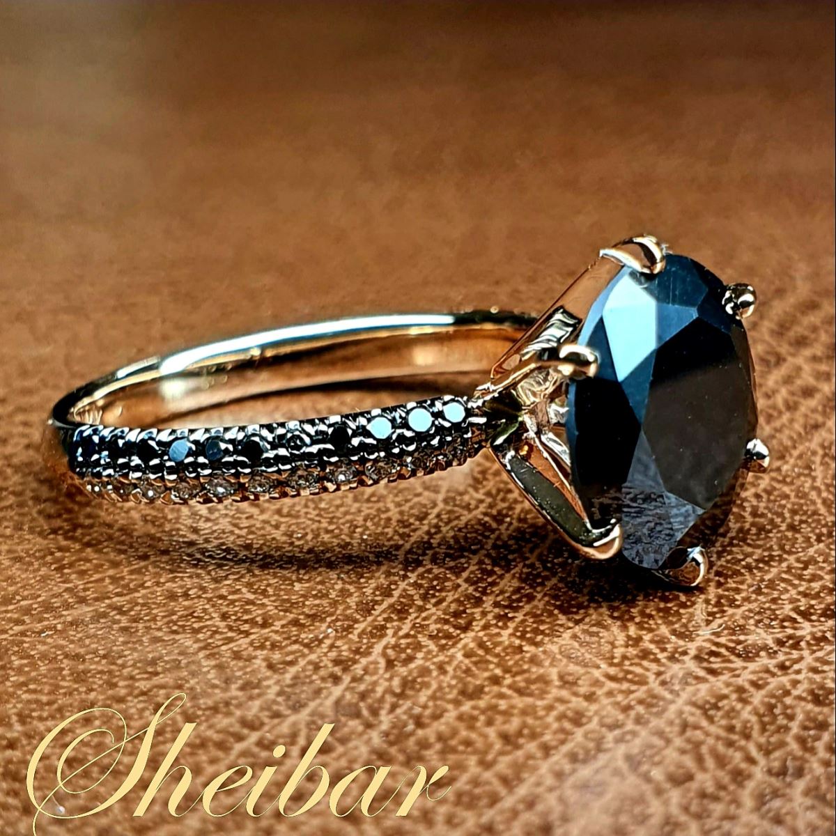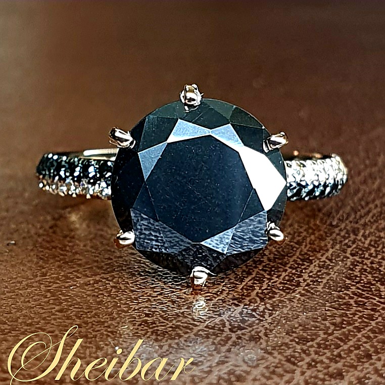 טבעות יהלומים שחורים, טבעת "בלאק מאונטן" טבעת יוקרתית בעיצוב מיוחד במינו. מבנה הטבעת הוא קלסי ועדין, כאשר הדבר המיוחד והשונה הוא שיבוץ היהלומים משני צידי הטבעת. כ-2 שורות של יהלומים מכל צד, כאשר ישנה שורה אחת יהלומים לבנים ושורה אחת יהלומים שחורים. השילוב בין היהלומים השחורים ללבנים נותן קונטרס מיוחד במינו ליהלומים ומבליט אותם בצורה יוצאת מן הכלל. הדבר המיוחד ביותר בטבעת הוא הראש המרשים והגדול בטבעת אשר מחזיק יהלום שחור גדול מעבדה השוקל כ-4.00 קראט. הראש המחזיק את היהלום המרכזי הוא עשוי מ-6 שיני זהב חזקות שמחזיקות את היהלום בצורת "כתר" מרשים ויפה. אחת הטבעות בעלי הנוכחות המרשימה ביותר ליהלום מרכזי. טבעת עוצרת נשימה...!!