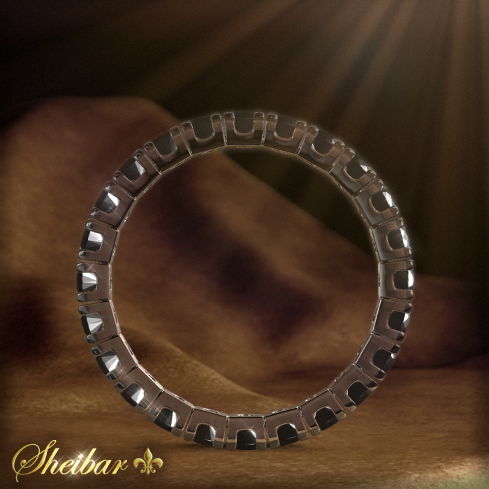 טבעות יהלומים שחורים, טבעת גלגל לייזר המשובץ סביב כל אורכו ביהלומים. מודל מיוחד זה של טבעת נעשה בעבודת לייזר מדוייקת וגבוהה, זאת בכדי לשמור על רמת גימור וסימטריות גבוהה לכל אורך התכשיט ובכך לוודא שכל היהלומים יהיו זהים לכל אורכו. בטבעת משובצים כ-24 יהלומים שחורים גדולים, שמשקלם הכולל הוא כ-1.20 קראט. תכשיט יפה ומרשים, אותו ניתן לענוד גם כטבעת נלווית וגם כטבעת בפני עצמה.