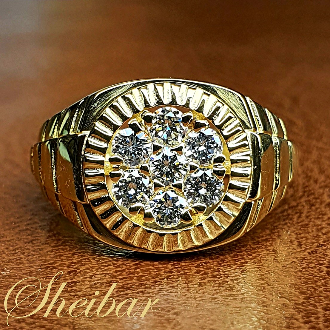 טבעת זהב ויהלומים מעוצבת לגבר- טבעת "קלוק". טבעת מעוצבת ומרשימה ביופיה בעלת נוכחות רבה. מודל הטבעת נעשה בצורה ממוחשבת ומדויקת. לאחר מכן הטבעת עברה נוקי ופוליש ברמה הגבוהה ביותר כדי שתהיה נוצצת חלקה ומבריקה בצורה מקסימלית. ראש הטבעת נראה כמו שעון כאשר במרכזו משובצים יהלומים גדולים מהסטנדרט בצורה צפופה. טבעת יוקרתית ומרשימה.