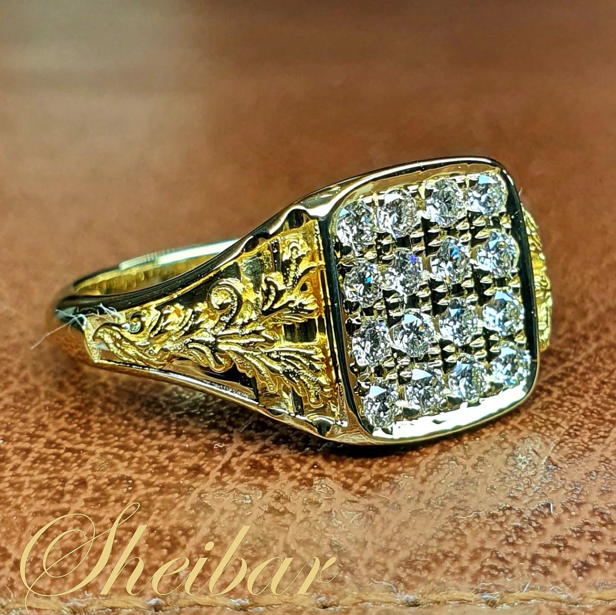 טבעת זהב ויהלומים מעוצבת לגבר- טבעת "ספרטה". טבעת מעוצבת ומיוחדת במינה. הטבעת עשויה זהב 14K+18K. כאשר הטבעת עצמה עשויה 14K והעיטורים המיוחדים בכל צד עשויים 18K. טבעת שנעשתה בניקוי בעבודת יד ברמה הגבוהה ביותר. היהלומים המשובצים במרכז הטבעת משובצים בשורות אחידות ונראים כמו לוח נוצץ של יהלומים. מתנה מושלמת לכל גבר.
