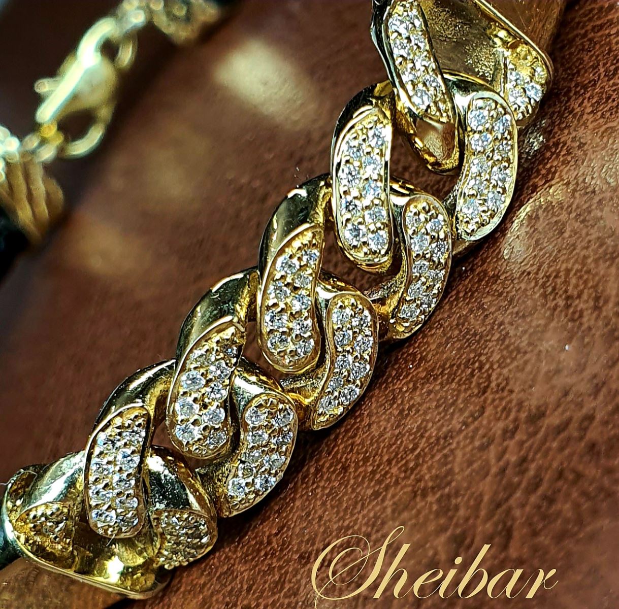 צמיד זהב ויהלומים לגבר- צמיד קובאנו. צמיד מרשים ביופיו ואיכותי לגבר. בבסיס הצמיד מתחיל למעשה הסוגר האיכותי והגדול של הצמיד. הגודל שלו למעשה מספק נוחות כדי לפחות ולסגור אותו בלי עזרה נוספת מאחרים, ובמקביל איכותי ושומר על הצמיד. לאחר מכן מהסוגר יש את הצמיד דמוי עור שהוא נמצא על רוב חלקי היד ונוח מאוד לענידה. החלק האחרון שהוא הכי חשוב ויפה הוא החוליות הקובני. חוליות זהב איכותיים ומזהב מלא, עליהם משובצים שורות של יהלומים טבעיים ברמה גבוהה של VS/F. השילוב של משטחי הזהב הגדולות של החוליות עם שורות היהלומים נותן נצנוץ יפה ומרשים. צמיד יוקרתי ומרשים ביופיו.