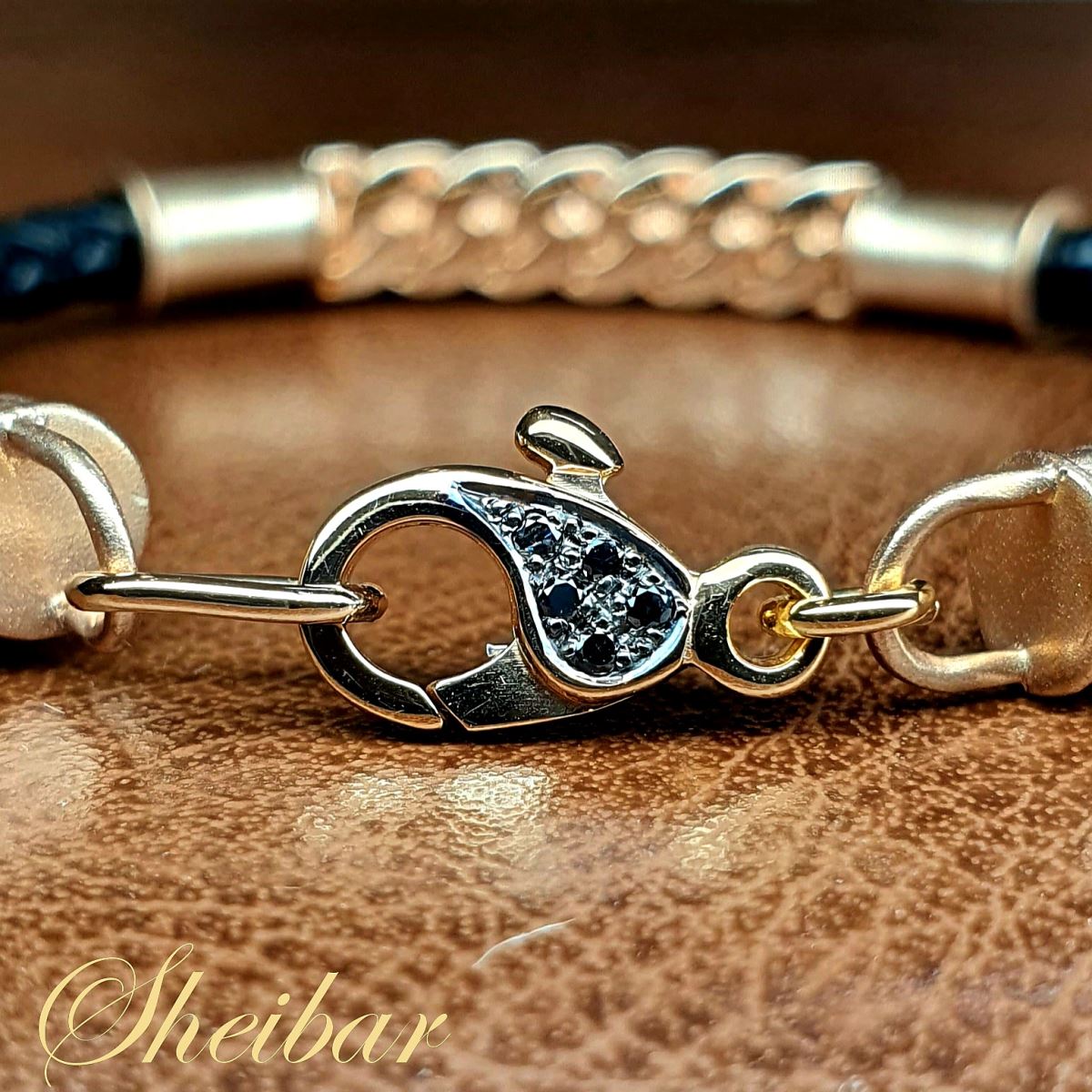 צמיד זהב ויהלומים שחורים לגבר - צמיד מיני קובאנו. צמיד מרשים ביופיו ואיכותי לגבר. בבסיס הצמיד מתחיל למעשה הסוגר האיכותי והגדול של הצמיד. הגודל שלו למעשה מספק נוחות כדי לפחות ולסגור אותו בלי עזרה נוספת מאחרים, ובמקביל איכותי ושומר על הצמיד, בנוסף הסוגר עצמו משובץ יהלומים. לאחר מכן מהסוגר יש את הצמיד דמוי עור שהוא נמצא על רוב חלקי היד ונוח מאוד לענידה. החלק האחרון שהוא הכי חשוב ויפה הוא החוליות הקובני. חוליות זהב איכותיים ומזהב מלא, עליהם משובצים שורות של יהלומים שחורים. השילוב של משטחי הזהב לבן של החוליות עם שורות היהלומים השחורים נותן קונטרס ומבליט את היהלומים. צמיד יוקרתי ומרשים ביופיו.