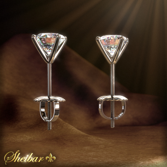 עגילי יהלומים קלאסים צמודים לאוזן, משובצים על גבי 4 שיני זהב עדינים המאפשרים חשיפה מרבית של היהלום ובכך מביאים למקסום נצנוץ היהלום כלפי חוץ. סגירת העגילים מתבצעת באמצעות הברגה בטיחותית המונעת נפילה של העגיל.