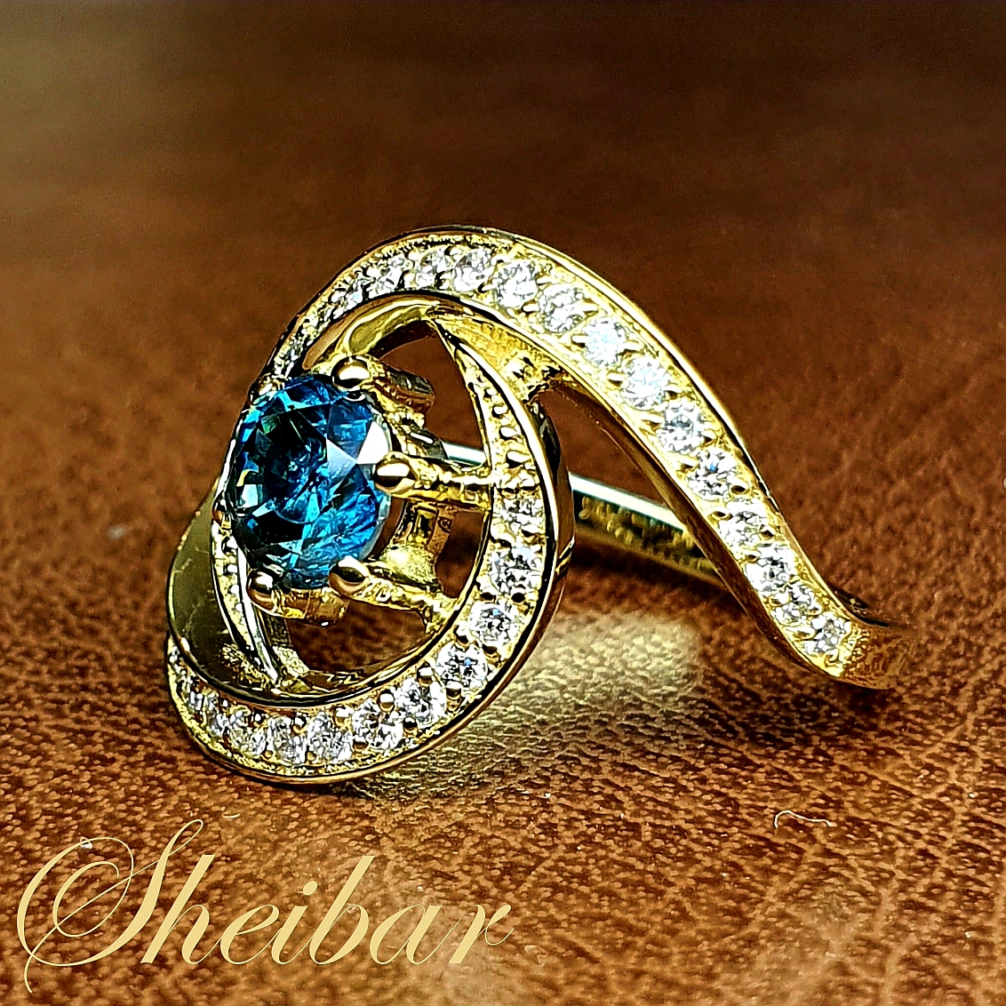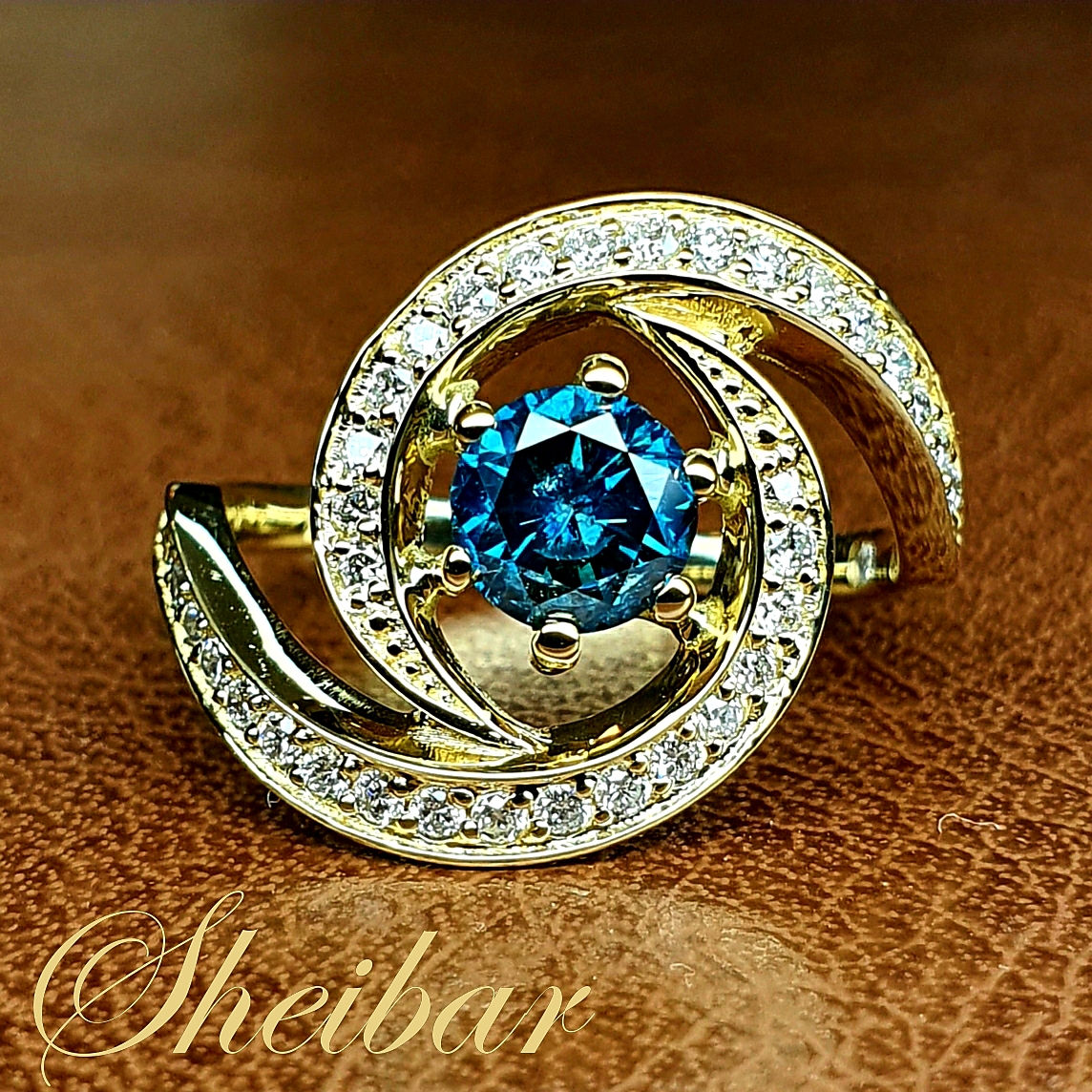טבעת יהלום טורקיז צבוע מטופל - דגם: "טורנדו" טבעת יהלומים עם המון נוכחות, המון אופי והמון יופי... הטבעת מזכירה במראה שלה טורנדו על ידי השינה שלה המתחילה מלמטה, חלקה וישרה ולקראת החלק העליון מתפצלת ומתחברת למעגל משובץ יהלומים בשיבוץ דגרדה.. היהלומים נבחרו בגדלים שלהם מהגדול אל הקטן על מנת ליצור איזון ועומק בעיצוב. הראש של הטבעת הוא באותו קו עם המעגל העליון, מחובר עם 4 שיניים חזקות אך עדינות לשינה. במרכז נמצא יהלום מטופל צבוע ויפה בגוון טורקיז. טבעת מיוחדת במינה בעיצוב שלה, בדיוק שלה ובנוכחות שלה.
