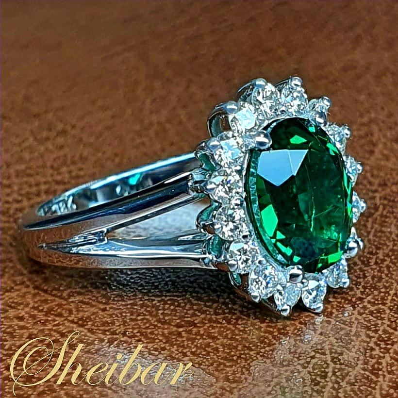 טבעות אמרלד ויהלומים, כשמה כן היא טבעת הנסיכה דיאנה . טבעת נסיכתית בעיצוב משודרג ומדהים, בעבודה איכותית ויוקרתית. תחילה ניתן לראות את העבודה מבסיס הטבעת כאשר מתחילה בשורה אחת של זהב חלק ובחלקה העליון מתפצלת ל-2 פסי זהב חלקים ויפים. הזהב הוא זהב 14K חלק ונקי ביותר. בחלקה העליון של הטבעת ניתן לראות את הראש המדהים, בעל הנוכחות הרבה שהוא מפגין. במרכז התכשיט נמצאת אבן חן "אמרלד" ירוקה מדהימה וצלולה בליטוש ’OVAL’. מסביב לאבן זו משובצים יהלומים לבנים וגדולים יחסית אשר נותנים אפקט נוסף לתכשיט ויוצרים עבודה יוקרתית ואיכותית. ללא ספק תכשיט בעיצוב מרשים ביותר..!