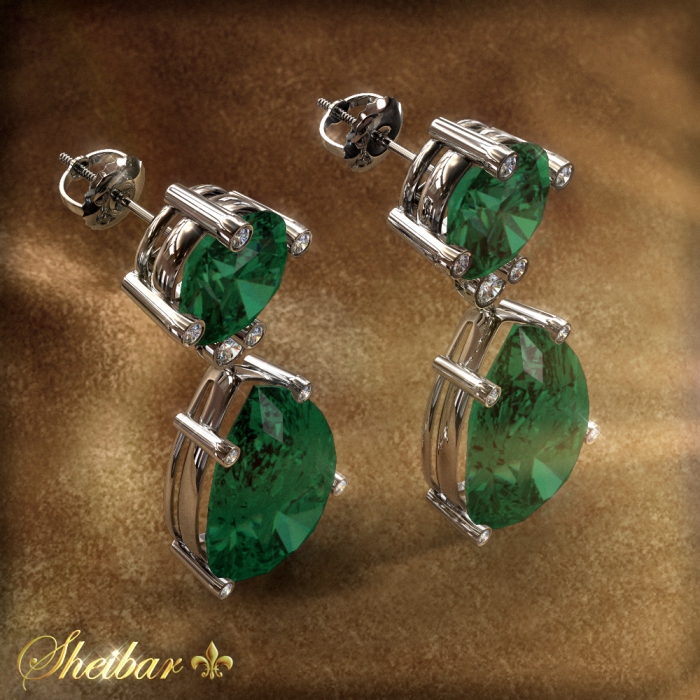 עגילי אמרלד ויהלומים, עגילים מיוחדים אלו הם נעשו בעיצובה של אנג’לינה ג’ולי האחת ויחידה. עגילים מדהימים וייחודיים ביופיים. עגילים עוצרי נשימה המשובצים אבני חן אמרלד (מעבדה מתורבת) השוקלים כ-40.0CT של אבן חן, בעבודת חיתוך יוצאת מן הכלל ומדויקת להפליא. עגילים אלו מלווים ביהלומים לבנים בצידי התכשיט . עגילים עם נוכחות רבה שלא ניתן לפספס בשום מצב. תכשיט יוקרתי עוצר נשימה...!!!