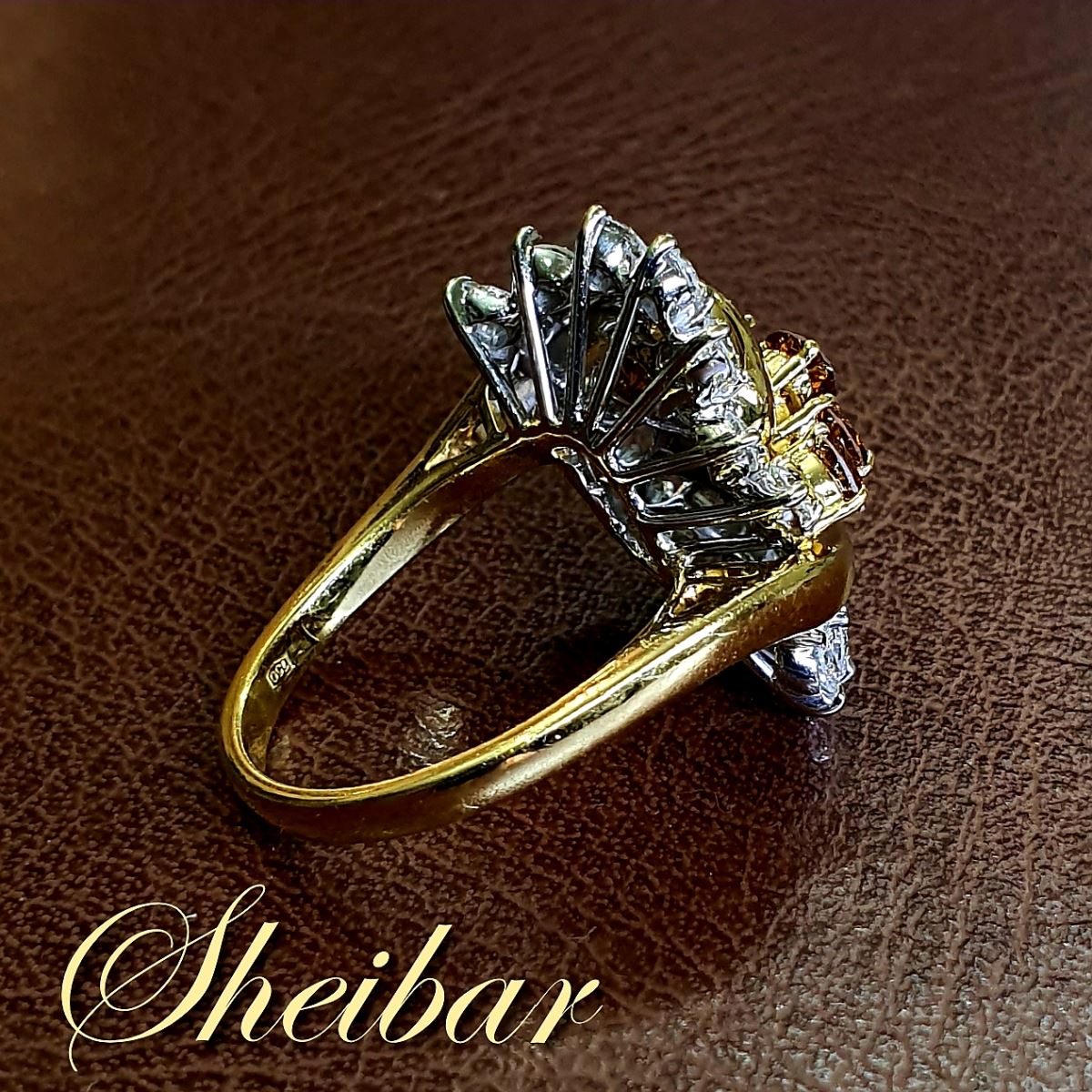 טבעת יהלומים ואבני חן-טבעת פנסי כתום. טבעת מעוצבת ומיוחדת שנעשתה בעבודת יד ייחודית. עבודת הזהב נעשתה בעבודת יד מדויקת ואיכותית כדי לשמור על כל הזוויות ועיצוב הטבעת בצורה מושלמת ונקייה. הטבעת עצמה משלבת גם זהב לבן וגם זהב צהוב. כל זה כדי שהזהב הלבן יבליט את היהלומים הלבנים, והזהב הצהוב יבליט את הגוון הפנסי של היהלומים הכתומות. טבעת מעוצבת ומיוחדת במינה. אחת במלאי בלבד!