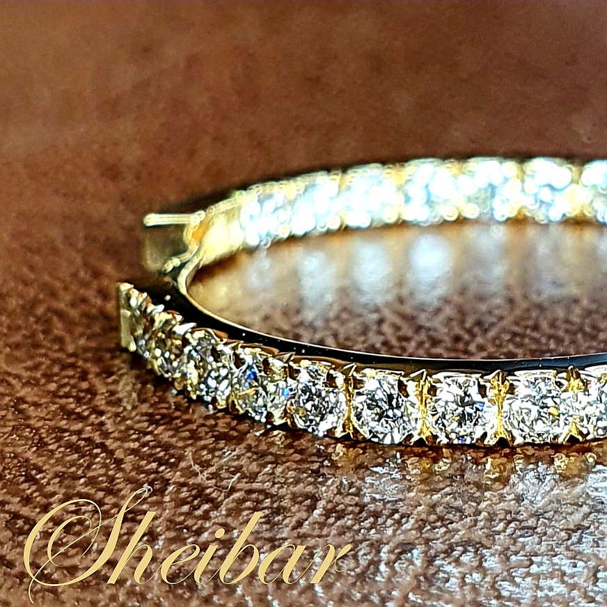 עגילי חישוב יהלומים מעוצבים. עגילי חישוק עם עיצוב מיוחד במינו. על העגילים משובצים יהלומים גדולים מהסטנדרט בשיבוץ שיניים, ובכך נותנים נוכחות מרשימה ביותר על העגילים. מה שמוסיף לנוכחות ולנצנוץ העגילים הוא השיבוץ הנוסף שנעשה בחלק האחורי של העגיל. התוספת של השיבוץ מוסיפה לנוכחות היהלומים ובכך כמעט מכל זווית ניתן לראות רק נצנוץ של יהלומים. עגילי חישוב יהלומים ברמה הגבוהה ביותר. מתנה מושלמת!