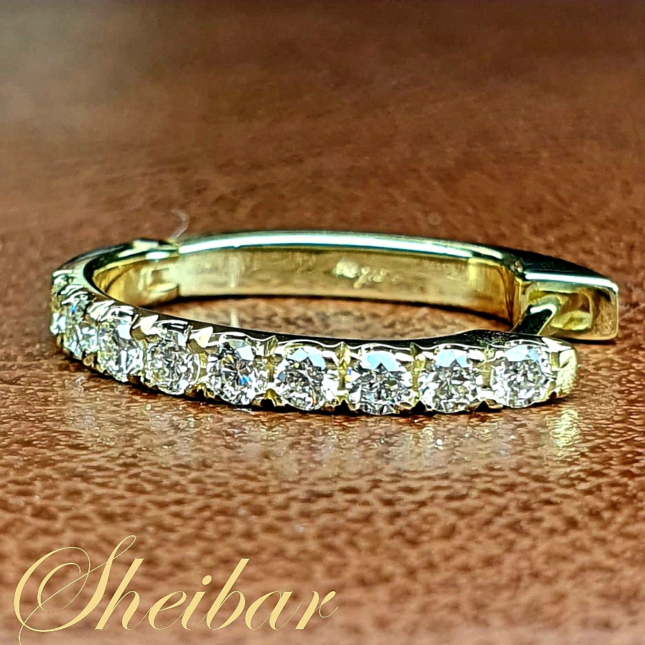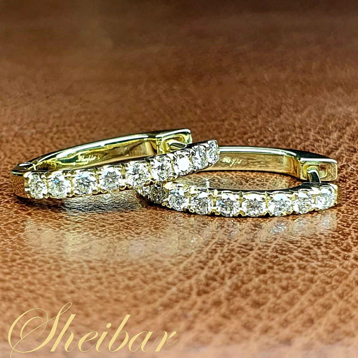 עגילי "U" גדול, עגילי חישוק משובצים יהלומים. בעגילים מרשימים ויפים אלו משובצים כ-18 יהלומים גדולים ויפים. עבודת הזהב נעשתה באמצעות יציקה סימטרית במיוחד וזאת בכדי לשמור על קו ישר ונקי של הזהב. על גבי הזהב משובצים להם היהלומים בשיבוץ שיניים וזאת על מנת להגיע ומקסימום נצנוץ של היהלומים והתכשיט. תכשיט יוקרתי ובעל עבודה ואיכות מאוד גבוהה. (מידות התכשיט הם: לגובה-19.3 מ"מ, לרוחב-2.5 מ"מ)