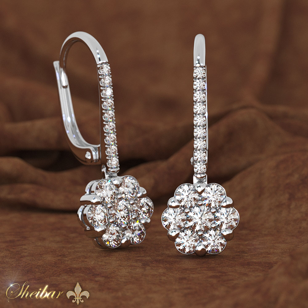 עגילי יהלומים דגם "עגיל אנגלי פרח". עגילים אשר מזכירים את הדגם "עגילי יו פרח" אך ההבדל העיקרי הוא שכאן בחלק העליון יש לנו סוגר קלאסי יותר- הסוגר האנגלי. ומה שמיחד את הדגם הזה, הוא שהסוגר האנגלי גם כן משובץ בשורת יהלומים טבעיים. מתחתיו ישנו הפרח אשר מורכב מזהב מלא ומשבעה יהלומים טבעיים אשר ביחד יוצרים מראה אחיד.