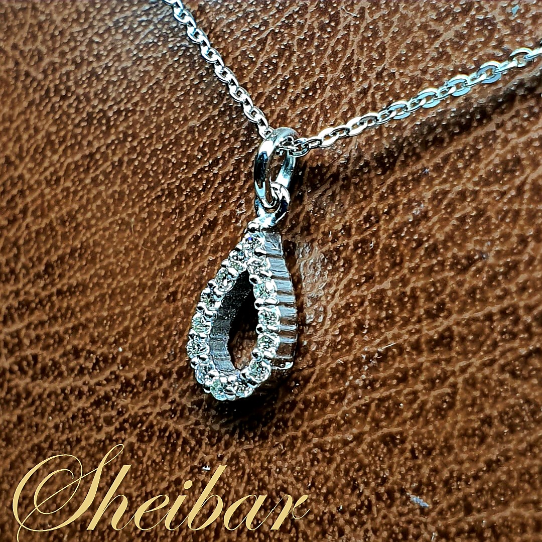 שרשרת יהלומים תליון טיפה. תליון עדין ויפה שמעוצב בצורת טיפה. התליון משובץ במעגל בצורה טיפה לכל אורכו ביהלומים. השיבוץ נעשה בשיבוץ שיניים עדין ויפה כדי למקסם את נצנוץ היהלומים. זהב לבן 14K. תליון קלסי עדין ויפה!