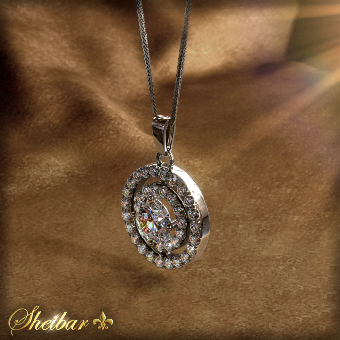 תליון "ספוט". תליון קלסי ומיוחד זה בעל נוכחות מרשימה ביותר. תליון זה עוצב בעיצוב קלסי ועדין ובנוסף מפגין נוכחות יהלומים ונצנוץ מרהיבה ביותר. כאשר במרכז לב התכשיט ממוקם היהלום המרכזי והגדול המשובץ בשיבוץ 4 שיניים גבוהה ובכך מבליט את גודלו ויופיו. אם זה לא הספיק לנו, בנוסף ניתן לראות תוספת של יוקרה באמצעות מעגל בינוני של יהלומים קטנים מסביב ליהלום המרכזי ובנוסף מעגל גדול של יהלומים המקיף את כל התכשיט. את תצוגת היהלומים המרשימה הזו לא ניתן לפספס משום מרחק...!!! יהלומים לבנים ויפים, והחשוב מכולם הוא עבודת השיבוץ היוקרתית והסימטרית שנעשתה בתכשיט.
