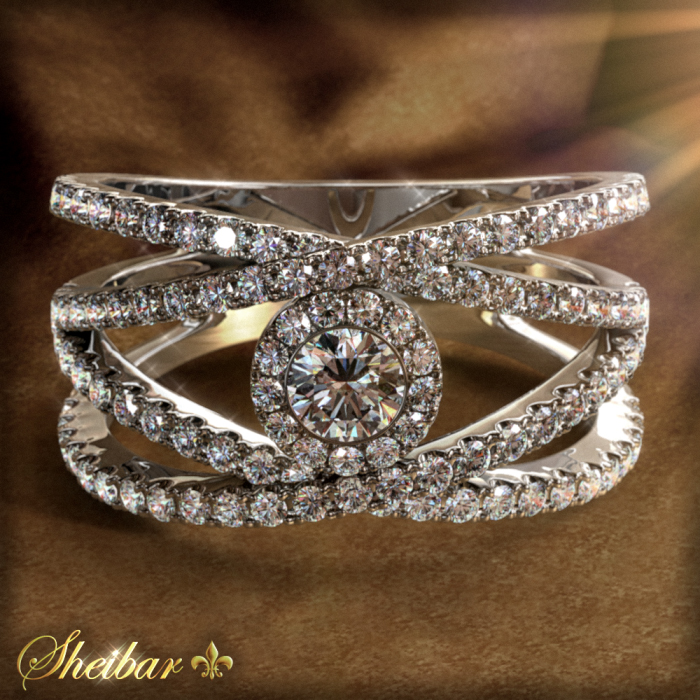 טבעת יהלומים "מילאנו", טבעת בעיצוב יפיפה ומקורי. טבעת מרשימה זו מעוצבת במגוון אלמנטים וצורות של זהב מכיוונים שונים. תחילה ניתן לראות משני צידי הטבעת כ-3 שורות של זהב עדין אשר עליו משובצים יהלומים איכותיים ויפים. בחלקה העליון של הטבעת, הפס האמצעי של הזהב הולך ומתפצל ל-2 עמודי זהב נוספים שגם עליהם משובצים יהלומים. לאחר תצוגה מרשימה זו של עמודי זהב המשובצים יהלומים קטנים, בראש הטבעת בין כל יהלומים אלו משובץ בנוסף יהלום גדול ומסביבו יהלומים קטנים המשמשים סוג של "כתר" ליהלום ובכך יוצרים מגש מקושט ויפיפה של יהלומים מכל זוויות הטבעת. ללא ספק טבעת מרשימה ויוקרתית במיוחד עם כמות של 131 יהלומים. טבעת מעצבים יוקרתית ומיוחדת במינה שמתפרשת בצורה מדהימה על היד.