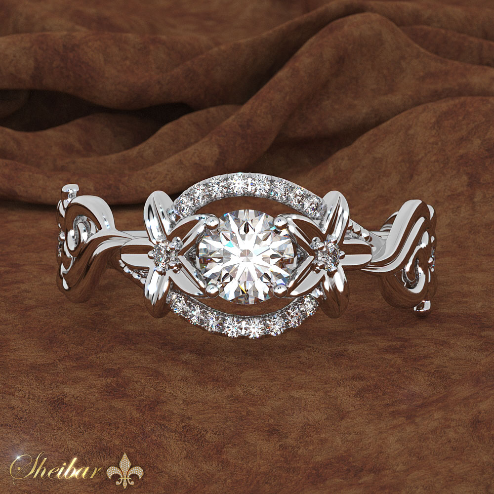 טבעת אירוסין ויהלום דגם – ""LEVIT. טבעת אירוסין מיוחדת במינה, עשויה מ-4 חלקים שונים העוברים תהליך בעבודת יד והרכבה עד ליצירת טבעת שהיא מושלמת בעיצוב שלה ובגימור שלה. השיבוץ המיוחד שנמצא על גבי עיצוב מיוחד המשלב סגנון וינטג’ עם אלמנטים כמו: פרחים, עלים, ומסגרת מסביב לאבן המרכזית, נותן לטבעת תחושה ומראה מלכותי ועתיק. במרכז הטבעת יהלום טבעי היושב ב4 שיניים ובפרופורציה מושלמת עם שאר האלמנטים בטבעת...