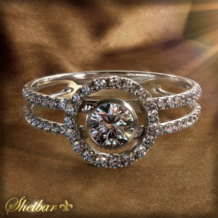 טבעות אירוסין, מודל מיוחד במינו "ענן יהלומים". בטבעת ניתן לראות שהיא משובצת על גבי 2 פסי זהב עדינים, כאשר על כל אחד מהם משובצת שורה של יהלומים לבנים המשובצים בשיבוץ שיניים, ובחלק התחתון של הטבעת הן מתחברות למרכז הטבעת. בנוסף בראש הטבעת ישנו היהלום המרכזי המשובץ בשיבוץ "כוס" מה שיוצר מראה גדול יותר לגודלו. מסביבו של היהלום המרכזי ניתן לראות מעגל נוסף מופרד של יהלומים קטנים ויפים. בעיצוב יפיפה של 2 מסילות יהלומים בכל צד. טבעת יוקרתית, עשירה ומיוחדת במינה.