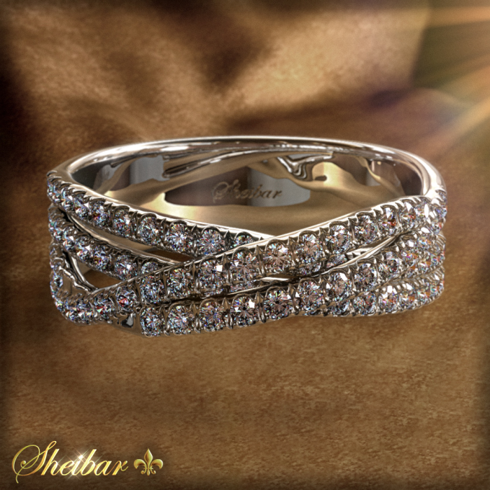 טבעות יהלומים מעוצבים, טבעת "מיני מגדולינה" טבעת אשר מעוצבת מ-4 קשתות של זהב נקי. כאשר 2 קשתות עולות בקו ישר ובנוסף מעליהם עוברות 2 קשתות נוספות מצד לצד. עבודת השיבוץ נעשתה בשיבוץ שיניים, שיבוץ מרשים ויפה שנעשה בעבודת יד מדויקת וברמה הגבוהה ביותר. הזהב הוא זהב 18K איכותי ויוקרתי. טבעת מרשימה ומיוחדת...