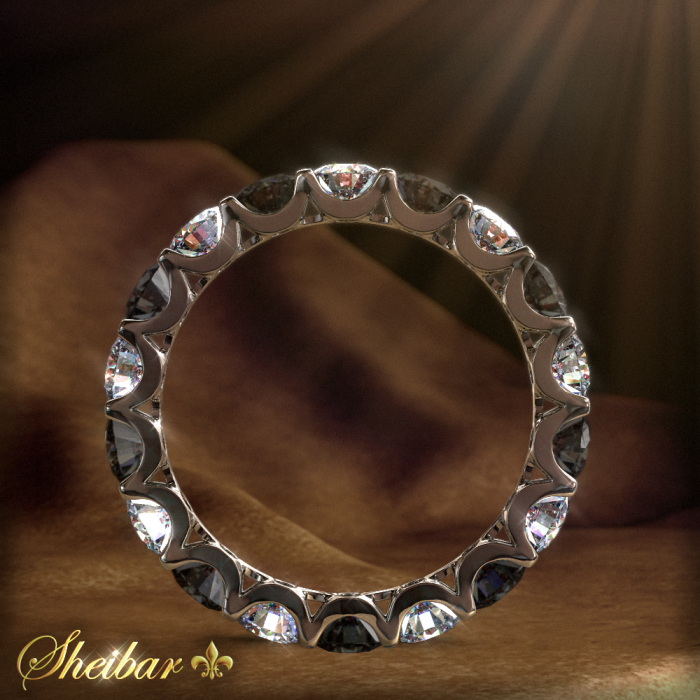 טבעת יהלומים "אינטרנטי שחור", טבעת גלגל בעלת נוכחות מרשימה ויוקרתית להפליא. טבעת המשובצת לכל אורכה ביהלומים גדולים ומרשימים, אשר לא ניתן לפספס אף אחד מהם ללא ספק..! כל יהלום בפני עצמו נותן את הנצנוץ והברק לכל אורך הטבעת. הטבעת משובצת ביהלומים שחורים ולבנים אחד אחרי השני, מה שמקנה לטבעת מראה יחיד במינו. ניתן לראות שכל יהלום ויהלום מוחזק באמצעות 4 שיניים בעבודת גימור יפיפייה להפליא. טבעת זו יכולה לשמש כטבעת נלוות, אך ללא ספק גם כשלעצמה בלבד, לא ניתן להסיר ממנה את המבט.(ניתן לשבץ את כל סוגי היהלומים ואבני חן לפי בחירה).