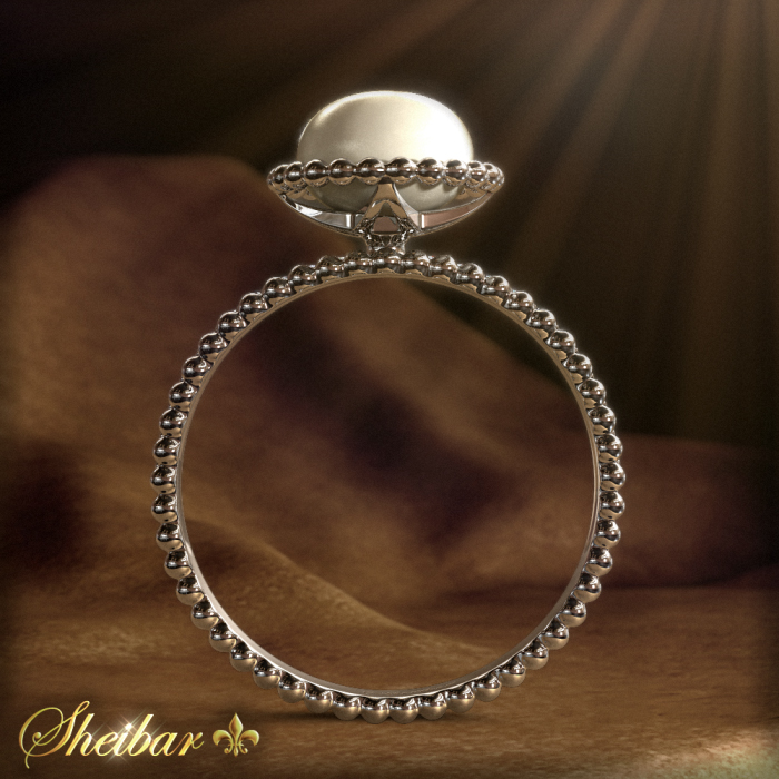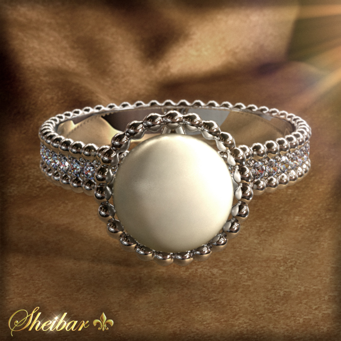 דגם טבעות יהלומים ופנינים, טבעת "פנינה". טבעת מעוטרת ומעוצבת, בעבודת זהב ייחודית. חישוק הזהב נעשה ביציקה מדויקת. בסיס הטבעת\ וראש הטבעת נעשו בנפרד, הפוליש והברקת הטבעת נעשים בעבודת יד במטרה לשמור על הגימורים ועל כדורי הזהב העדינים שנמצאים מסביב לטבעת. בנוסף,משני צידי הטבעת משובצים יהלומים קטנים המוסיפים לעיצוב הווינטג’ המיוחד הזה. במרכז התכשיט לא ניתן לפספס את הפנינה המרשימה שיושבת לה בתוך "בית" מזהב. טבעת מקורית ומרשימה.