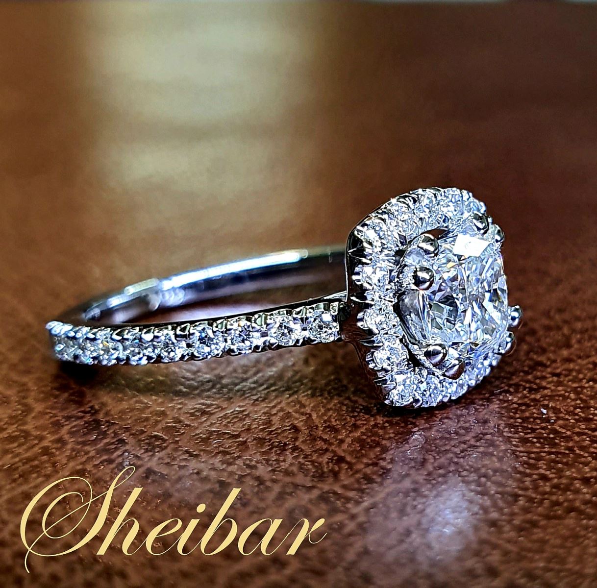 טבעות אירוסין ויהלומים, טבעת "כרית". טבעת קלסית עם עיצוב שונה מיוחד ומרשים של ראש הטבעת. בסיס הטבעת מתחיל כטבעת קלאסית ועדינה. בחלקה העליון של הטבעת- הראש, המופיע בצורת "חושן" (בין עגול למרובע). הראש מגיע בצורה רחבה ומרשימה בכדי למשוך את כל תשומת הלב אליו. כל הראש משובץ יהלומים קטנים במטרה ליצור הבלטה מלאה של היהלום הגדול המונח במרכז הטבעת. גודל היהלום המרכזי 0.50 קראט. טבעת בעיצוב מיוחד ומהפנט.