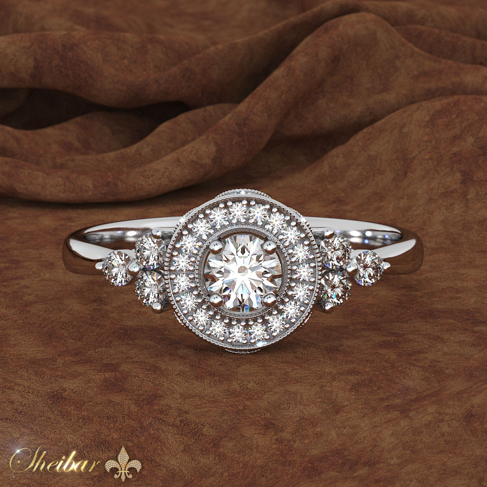 טבעת אירוסין ויהלום דגם – "מולייר". טבעת שהיא בסגנון וינטג’ במקור שלה הבנויה מ2 חלקים, בצורה מאוד מיוחדת, עם שינה דקה ועדינה ובקצה שלה, מכל צד, משובצים 3 יהלומים שכל אחד ממנו 2 נקודות ומוחזק ב4 שינים.. במרכז ישנו ראש אשר משובץ מכל הצדדים בשביל לתת מראה יוקרתי יותר, וינטג’ ומלכותי. במרכז משובץ יהלום טבעי יפייפה של 0.40 נק’ ומשלים את כל הטבעת.