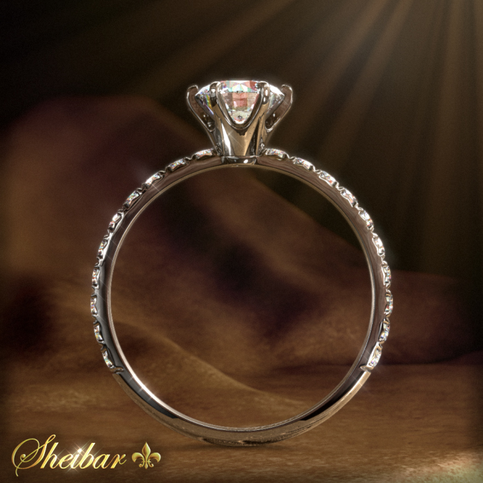 טבעות אירוסין, מודל "שונטל D" היהלום שבכתר. טבעת שמציגה יוקרה ואיכות ללא ספק. מודל קלאסי יוקרתי ומרשים, כאשר בחלקו העליון היהלום המרכזי מונח על גבי 6 שיניים עדינות ויפות השומרות עליו. בראש הטבעת משובץ יהלום של 1.00 קראט (ניתן לשבץ גדלים נוספים לפי בחירה). משני צידי הטבעת משובצים יהלומים בשיבוץ "שיניים", כאשר גם מפרופיל הטבעת ניתן לראות את היהלומים. גודלו של כל אחד מהם הוא גדול מהרגיל ובעל נוכחות נכבדה. היהלומים הם יהלומים לבנים ונקיים כאשר את כל אחד מהיהלומים ניתן לראות בנפרד בצורה ברורה לחלוטין,(סה"כ כ16 יהלומים קטנים).