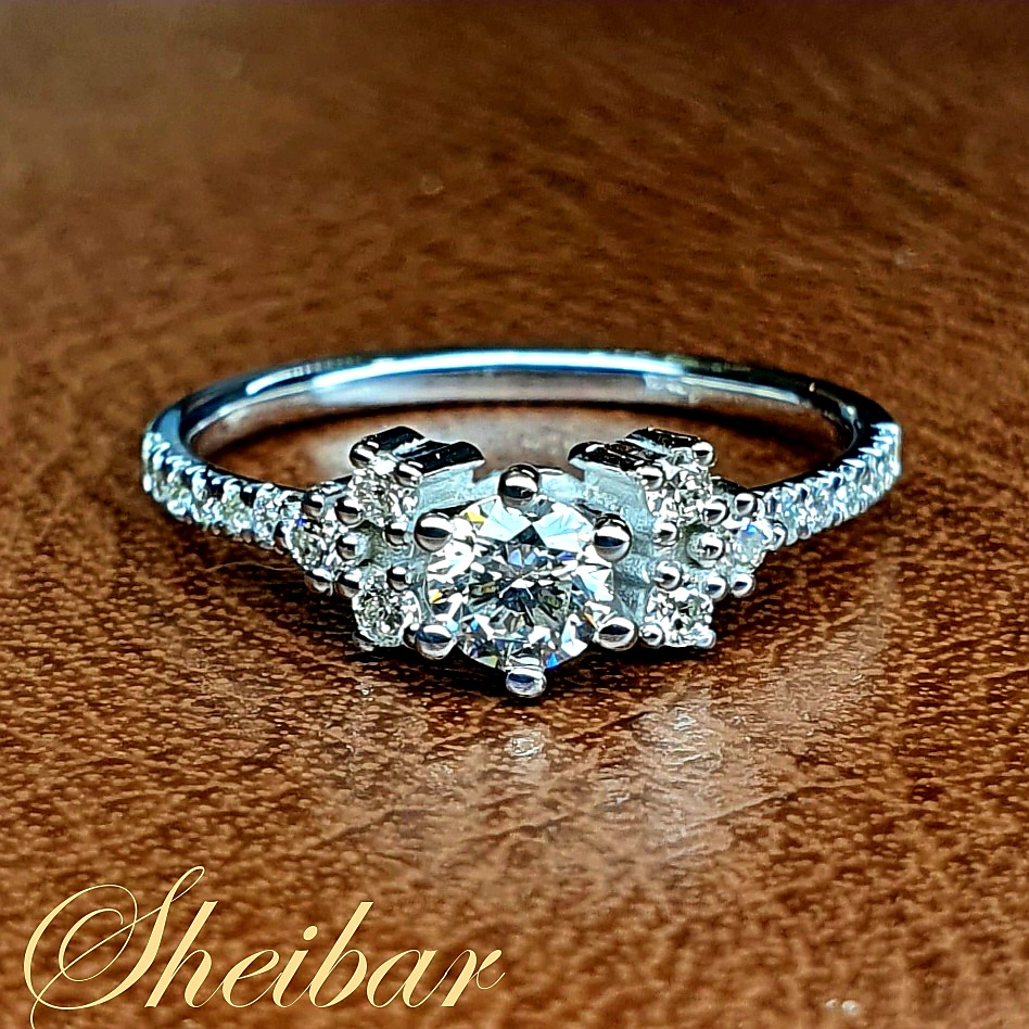 טבעות יהלומים, טבעת אירוסין "דימיאן" טבעת וינטג’ בעיצוב מיוחד. טבעת עדינה ומיוחדת אשר עשויה מפס עדין של זהב סימטרי. הטבעת משובצת כולה ביהלומים טבעיים מדהימים ונקיים. כאשר מגיעים לראש הטבעת ניתן לראות כ-3 יהלומים קטנים משני צידי הטבעת אשר יוצרים עיצוב "וינטג’ " מיוחד במינו. בין ששת היהלומים הללו ניתן לראות את היהלום המרכזי והמרשים המובלט באמצעות היהלומים הקטנים. היהלום המרכזי יושב בצורת כתר מרשים ויפה. טבעת בעיצוב מיוחד במינו ועדינה להפליא, בנוסף בעלת נוכחות נוצצת....!