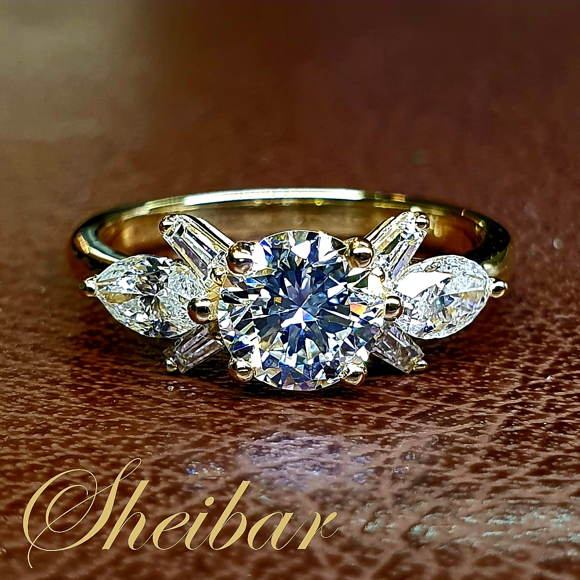 טבעת אירוסין ויהלומים- מודל "סהרה". טבעת מעוצבת שנעשתה בעבודת יד מיוחדת ועדינה. הטבעת משלבת מגוון של ליטושי יהלומים. במרכז יהלום גדול ומרשים בליטוש עגול. משני צידי הטבעת משובצים יהלומים ב-2 סוגי ליטושים שונים, ליטוש "מרקיזה" וליטוש "טפרים" מה שנותן נוכחות שונה ומיוחדת לטבעת. מודל שלא תראו על ידיים אחרות. הצעה מושלמת ומיוחדת. טבעת שלא תראו על כל אצבע. טבעת ייחודית ויפה!