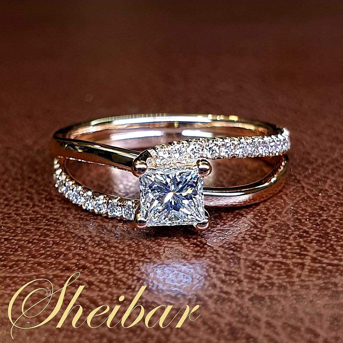 טבעת אירוסין ויהלומים מודל "גלים פרינסס". טבעת מעוצבת ומרשימה. עשויה זהב איכותי מלא 14K. נעשתה עבודת הפוליש המדויקת נעשתה בעבודת יד איכותית כדי לשמור על פסי הזהב נקיים ויפים. השילוב של פס זהב ופס יהלומים נותן אפקט מרשים ומיוחד לטבעת, בפס זהב שמשובץ יהלומים ניתן לראות שהיהלומים עולים עד למעלה למרכז היהלום המרכזי (ניתן לשבץ את כל הטבעת או לא לשבץ בכלל). במרכז הטבעת יהלום מרכזי מרשים ויפה בליטוש "פרינסס", יהלום מרובע (ניתן לשבץ יהלום עגול). טבעת איכותית ויפה, טבעת להצעה מושלמת!