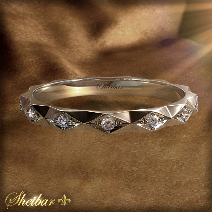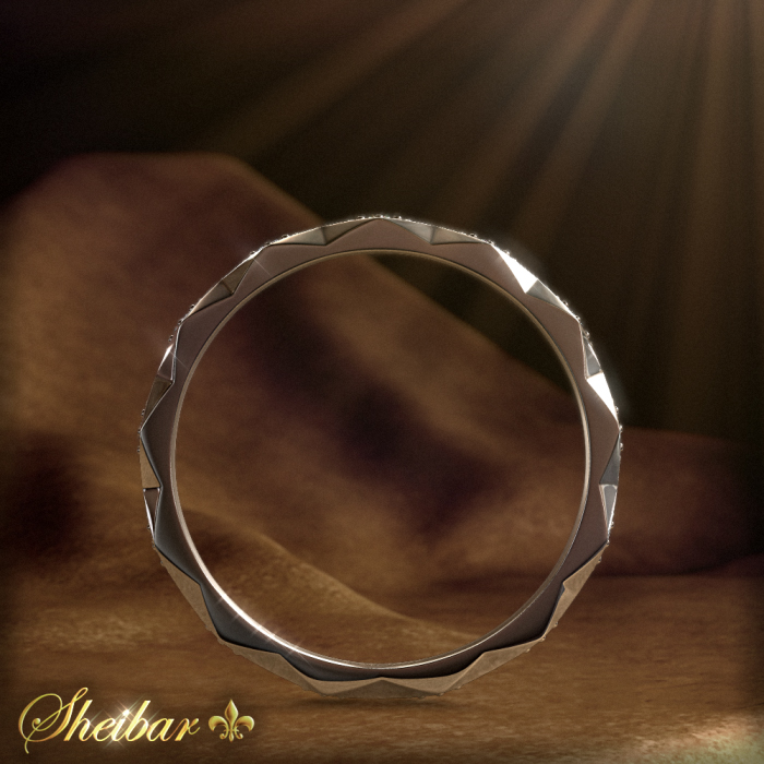 טבעת יהלומים מעוצבת בליטושי כוכבי זהב. הטבעת מעוצבת בצורת מעוינים אשר יוצרים בזה אחר זה צורה של כוכבים צמודים עדינים ויפים. היהלומים שובצו אחד אחד בצורה מדויקת ונקייה בכדי לשמר את רמת הגימור של הטבעת ובכך לשמור על רמת עבודה גבוהה. בטבעת משובצים יהלומים לכל אורך הטבעת. היהלומים משובצים על גבי זהב 14K\18K לפי הזמנה. טבעת מעוצבת ומיוחדת במינה.