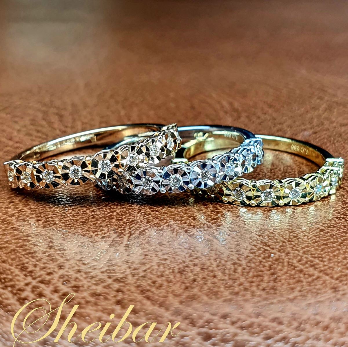 טבעת גלגל יהלומים לייזר. טבעת מעוצבת ויפה שמשלבת נצנוץ של יהלומים עם נצנוץ של לייזר מסביבם. טבעת עדינה ויפה המשלמת נוכחות. ניתן להכין בזהב צהוב/לבן/אדום.