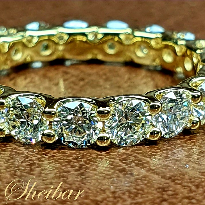 טבעת גלגל יהלומים "איטרניטי", טבעת גלגל בעלת נוכחות מרשימה ויוקרתית להפליא. טבעת המשובצת לכל אורכה ביהלומים גדולים ומרשימים, אשר לא ניתן לפספס אף אחד מהם ללא ספק..! כל יהלום בפני עצמו נותן את הנצנוץ והברק לכל אורך הטבעת. הטבעת משובצת ביהלומים לבנים אחד אחרי השני בצורה צפופה, מה שמקנה לטבעת מראה יחיד במינו. ניתן לראות שכל יהלום ויהלום מוחזק באמצעות 4 שיניים בעבודת גימור יפיפייה להפליא. טבעת זו יכולה לשמש כטבעת נלוות, אך ללא ספק גם כשלעצמה בלבד, לא ניתן להסיר ממנה את המבט.(ניתן לשבץ את כל סוגי היהלומים ואבני חן לפי בחירה).