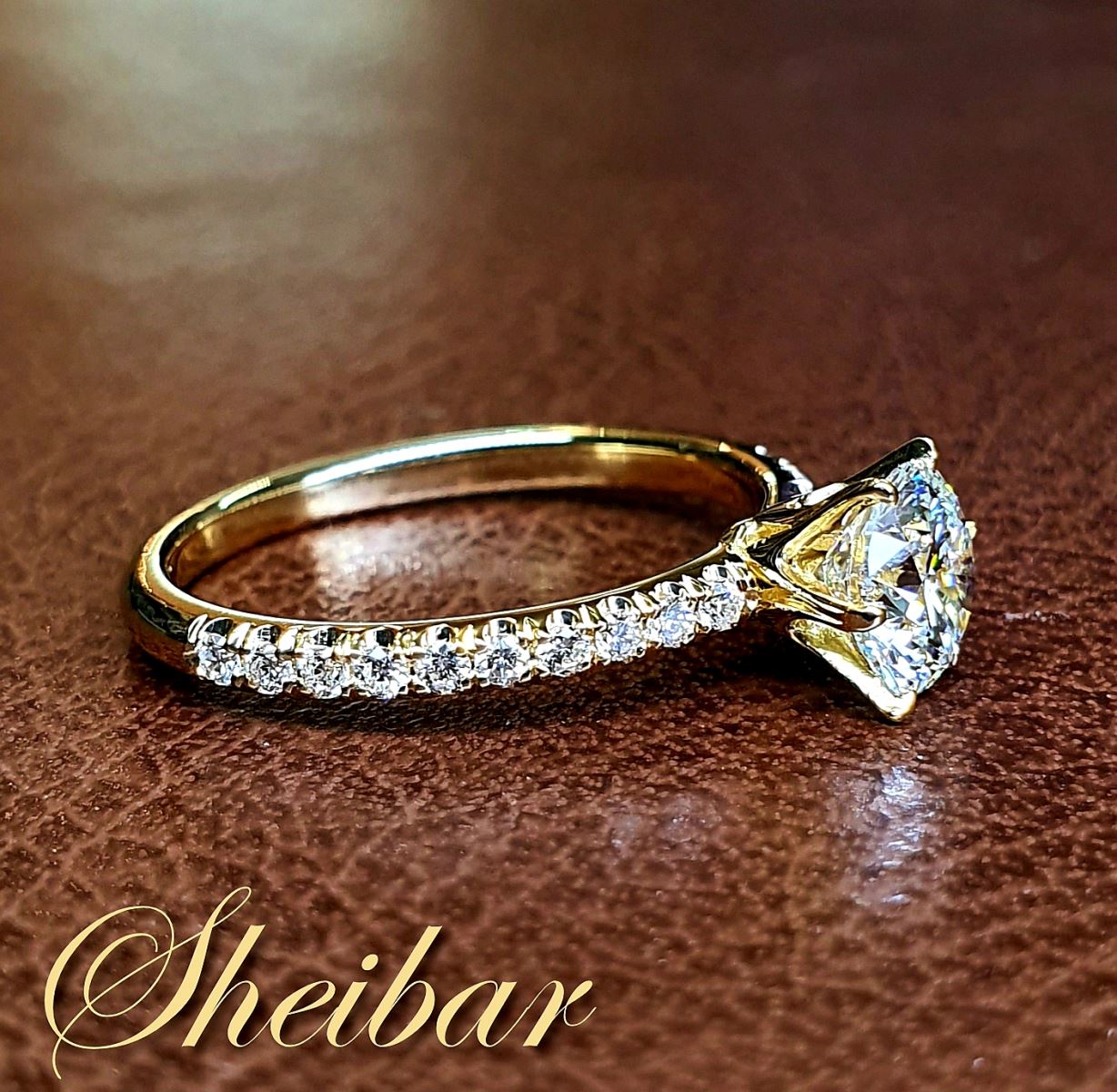 טבעת אירוסין ויהלומים "שונטל", טבעת זו היא אחת מהטבעות הקלסיות העדינות והיותר יפות מסוגה. טבעת אשר שובצה בה שורה של יהלומים משני צידי הטבעת, כאשר השיבוץ נעשה בשיבוץ "שיניים" היפיפה והעדין. מה שמיוחד בסוג שיבוץ "שיניים" הוא הייחודיות בה משובצים היהלומים הקטנים המדגישים כל יהלום ויהלום בפני עצמו, מה שנותן מקסום של נצנוץ ליהלומים. בראש ההר היפה והעדין הזה נמצאת גולת הכותרת שהיא למעשה היהלום המרכזי והמרשים שנמצא בקצה הטבעת. היהלום הגדול משובץ על גבי 6 שיניים עדינות ויפות ובכך היהלום המרכזי נחשף מכל הכיוונים במטרה לייצר כניסה של אור ובכך לזריקה של אור חזרה החוצה, שלמעשה שומר על עדינות הטבעת ובכך מבליט ונותן הצגה ייחודית ליהלום. מושלמת להצעת אירוסין...