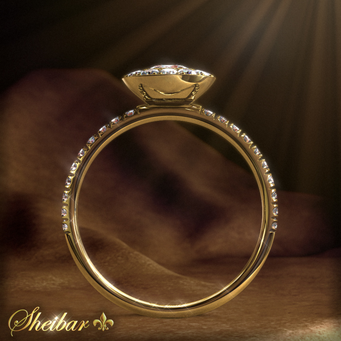 טבעות אירוסין, מודל "אספן". טבעת המשובצת משני צידיה ביהלומים קטנים ולבנים, המשובצים בשיבוץ שיניים. חישוק הטבעת מגיע בצורה עגולה וניתן לשינוי לפי דרישה לטבעת בצורה מרובעת. בראש הטבעת ישנו היהלום המרכזי המשובץ בשיבוץ "כוס" המוטבע בתוך הטבעת וסביבו חישוק עדין ודק של זהב,(ניתן בנוסף להוציא את היהלום המרכזי עם שיבוץ שיניים לפי דרישה). מסביב ליהלום המרכזי ניתן לראות שורה אחת של יהלומים קטנים המקיפים את היהלום המרכזי ובכך מוסיפים תחושה של גודל לראש הטבעת. טבעת עדינה ויפה.
