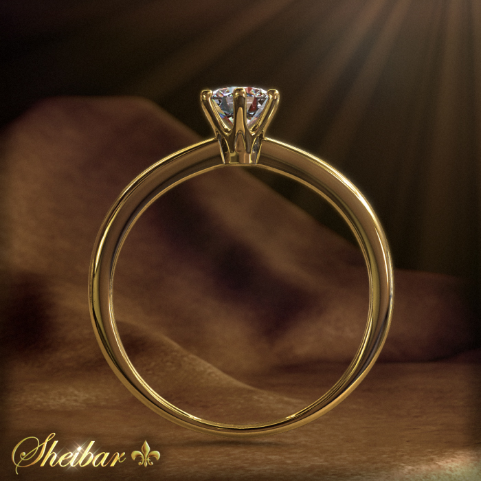 טבעת אירוסין יהלום "שונטל בומביי". עשויה K18 טבעת זו היא מסוג הטבעות הקלסיות המרשימות ובעלות נוכחות גדולה. החלק העיקרי בטבעת הוא היהלום המרכזי והמרשים. יהלום זה מורם באמצעות 6 שיניים עדינות ויפות המחזיקות את היהלום כמו "כתר" מרשים ויוקרתי. עבודת הזהב נעשתה בצורה עדינה ועגולה בכדי לאפשר ענידה נוחה של הטבעת. זהב נקי, חלק ויוקרתי.