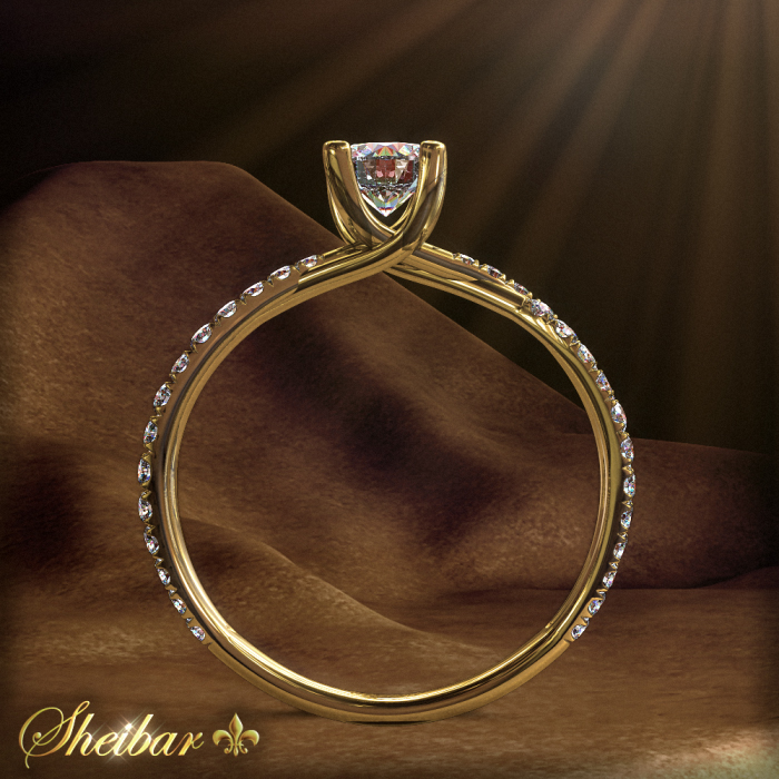 טבעות אירוסין ויהלומים, טבעת דגם "לופי". טבעת בעיצוב טוויסט\לופ של יהלומים. עיצוב הטבעת נעשה באמצעות עבודת מחשב סימטרית וחדה, זאת על מנת לשמור על רמת גימור וסימטריות גבוהה. עבודת הזהב נעשתה ביציקה מדויקת ולאחר מכן עברה ליטוש ופוליש על מנת להבריק ולהחליק אותה. ניתן לראות משני צידי הטבעת כ-2 שורות של זהב המשובצות כולן ביהלומים לבנים ויפים. סה"כ כ-60 יהלומים המשולבים זה בזה בצורת לופ. במרכז הטבעת עומד יהלום מרכזי ומרשים בין כל היהלומים הקטנים הללו. סה"כ בטבעת כ-0.75 קראט של יהלומים. טבעת בעיצוב מרשים ומיוחד...!