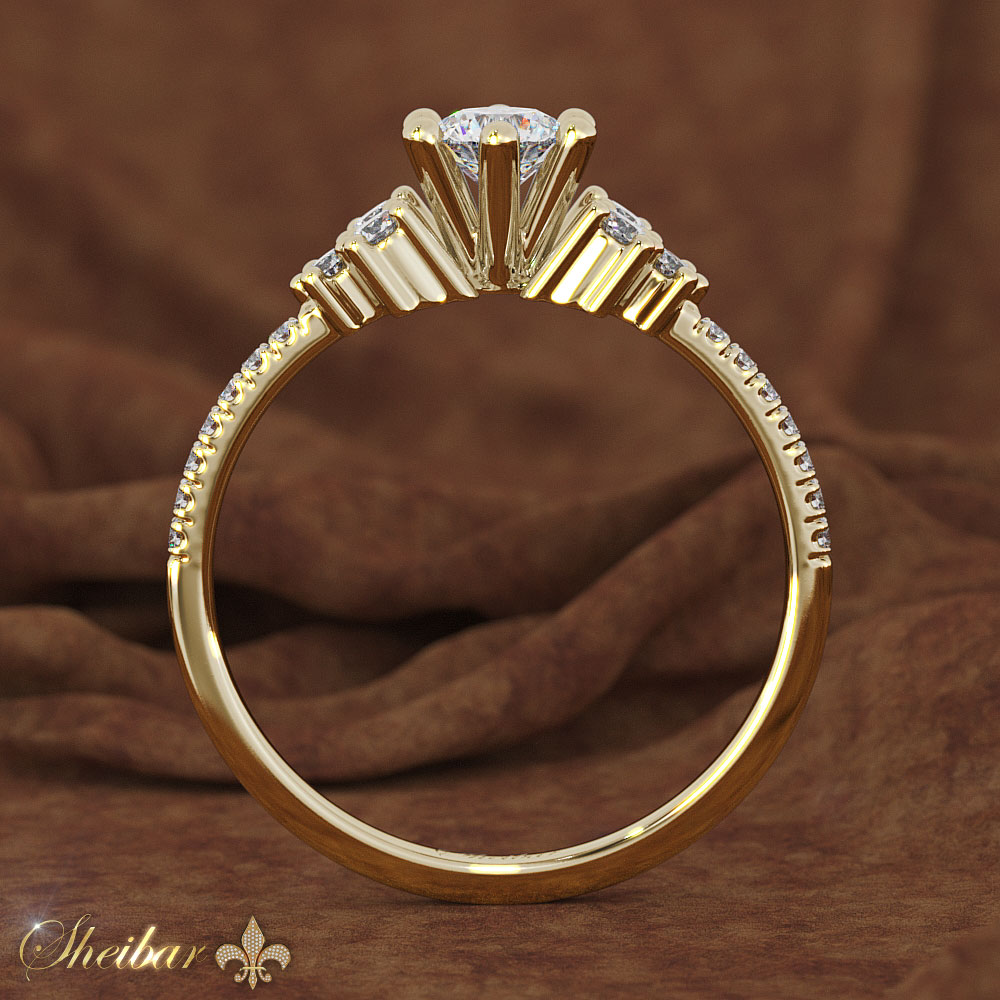 טבעות יהלומים, טבעת אירוסין "דמיאן" טבעת קלסית בעיצוב מיוחד. טבעת עדינה ומיוחדת אשר עשוייה מפס עדין של זהב סימטרי. הטבעת משובצת כולה ביהלומים טבעיים מדהימים ונקיים. כאשר מגיעים לראש הטבעת ניתן לראות כ-3 יהלומים קטנים משני צידי הטבעת אשר יוצרים עיצוב "וינטג’ " מיוחד במינו. בין ששת היהלומים הללו ניתן לראות את היהלום המרכזי והמרשים המובלט באמצעות היהלומים הקטנים. היהלום המרכזי יושב בצורת כתר מרשים ויפה. טבעת בעיצוב מיוחד במינו ועדינה להפליא, בנוסף בעלת נוכחות נוצצת....!