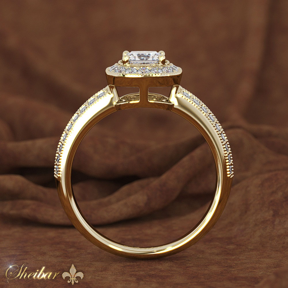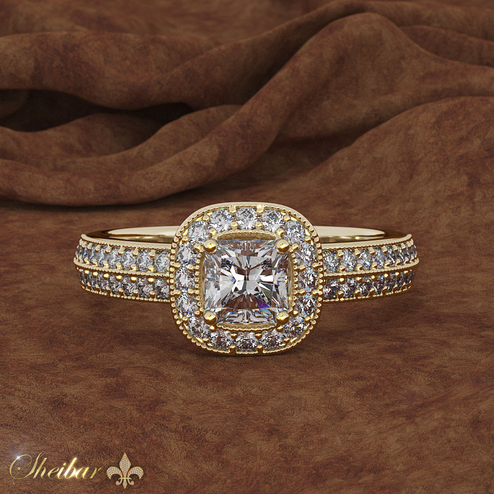 טבעות אירוסין, מודל מהמם "מרידיאן קושן", בסגנון וינט’ג עם שילוב חדשני ומיוחד. טבעת מרשימה זו משובצת משני צידיה ב-2 שורות של יהלומים כשהשיבוץ נעשה בשיבוץ "וינטג’" בצורה סימטרית ואחידה. ואם לא הסתפקנו ביהלומים בצידי הטבעת הוספנו גם יהלומים בראש הטבעת, ניתן לראות שורה של יהלומים יפים ומרשימים מסביב ליהלום המרכזי המדגישים את נוכחותו של היהלום בטבעת מיוחדת זו. ובקצה פירמידה מרשימה זו, שמנו את הדובדבן שבקצפת שהוא היהלום המרכזי בחיתוך "קושן" ששובץ באמצעות 4 שיניים המרימות את היהלום המרכזי מעל כולם ונותנות לו הופעה מיוחדת במינה. ללא ספק טבעת שלא ניתן לפספס..!