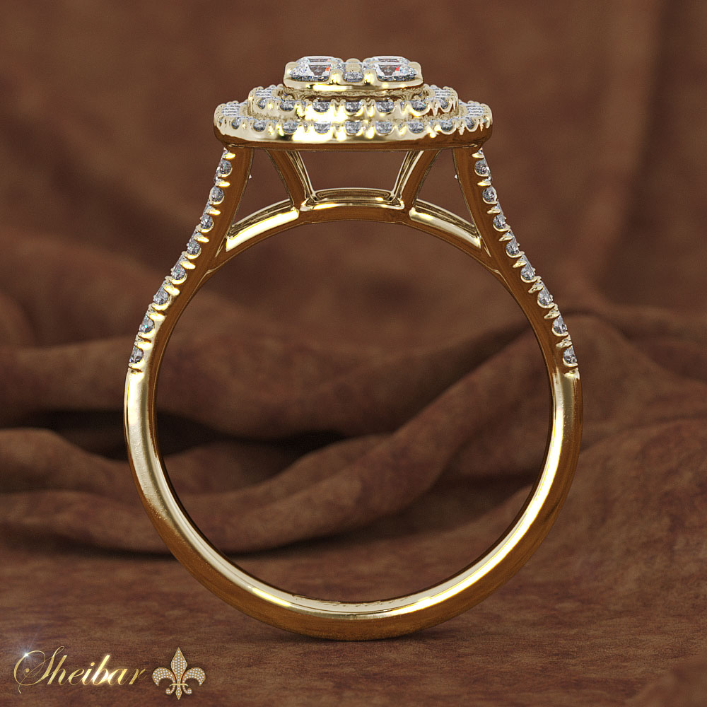טבעת אירוסין דגם"שילד". דגם טבעת זו עשויה זהב לבן K14 בעיצוב מיוחד במינו ומיוצר בעבודת יד. משובצת יהלומים בגדלים שונים במשקל כולל של 1.02 קראט. בראש הטבעת שיבוץ מיוחד המדמה יהלום מרכזי גדול בשל צפיפות וחישוב סידור היהלומים בצורה מושלמת ... בנוסף, בין התעלה בצדדים משובצים 6 יהלומים ב3 גדלים שונים ...שיבוץ גימור ואיכות היהלומים יוצאים מן הכלל VS/F קולקשיין