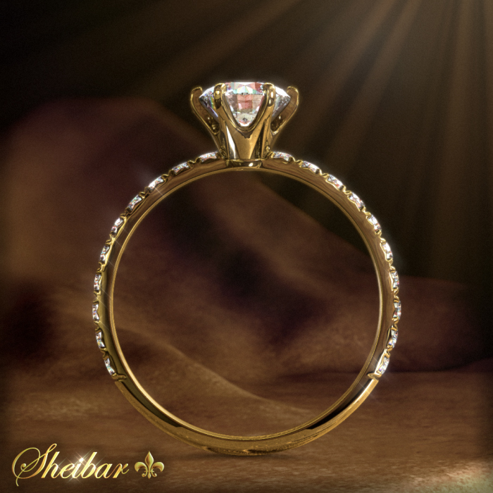 טבעות אירוסין, מודל "שונטל D" היהלום שבכתר. טבעת שמציגה יוקרה ואיכות ללא ספק. מודל קלאסי יוקרתי ומרשים, כאשר בחלקו העליון היהלום המרכזי מונח על גבי 6 שיניים עדינות ויפות השומרות עליו. בראש הטבעת משובץ יהלום של 1.00 קראט (ניתן לשבץ גדלים נוספים לפי בחירה). משני צידי הטבעת משובצים יהלומים בשיבוץ "שיניים", כאשר גם מפרופיל הטבעת ניתן לראות את היהלומים. גודלו של כל אחד מהם הוא גדול מהרגיל ובעל נוכחות נכבדה. היהלומים הם יהלומים לבנים ונקיים כאשר את כל אחד מהיהלומים ניתן לראות בנפרד בצורה ברורה לחלוטין,(סה"כ כ16 יהלומים קטנים).