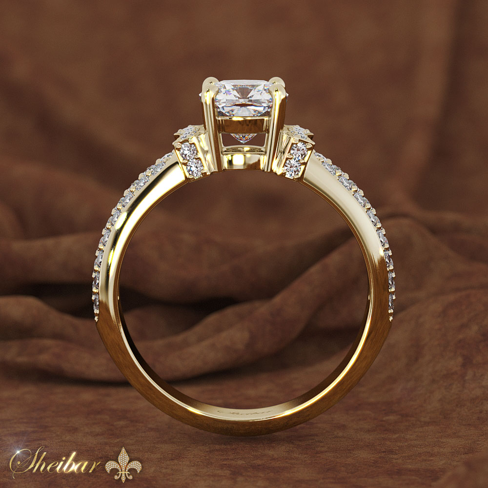 טבעות אירוסין ויהלומים טבעת חושן בומביי טבעת יהלומים מרשימה בעלת נוכחות ויוקרה. משובצת במרכזה יהלום קושן מהמילה צורת כרית- יהלום מלבני עם פינות מעוגלות הנחשק מאוד בשוק וקשה להשגה. בצידי היהלום המרכזי 2 פסי זהב מעוקלים המשובצים לאורכם יהלומים קטנים היוצרים מסגרת מושלמת ליהלום המרכזי. בצידי הטבעת משולב על גבי פסי הזהב חישוק בומביי מעוגל שמשובץ ב-3 שורות של יהלומים בשיבוץ זיגזג מה שנותן מראה "שטיח יהלומים". טבעת יוקרתית, איכותית, ומאוד מרשימה.