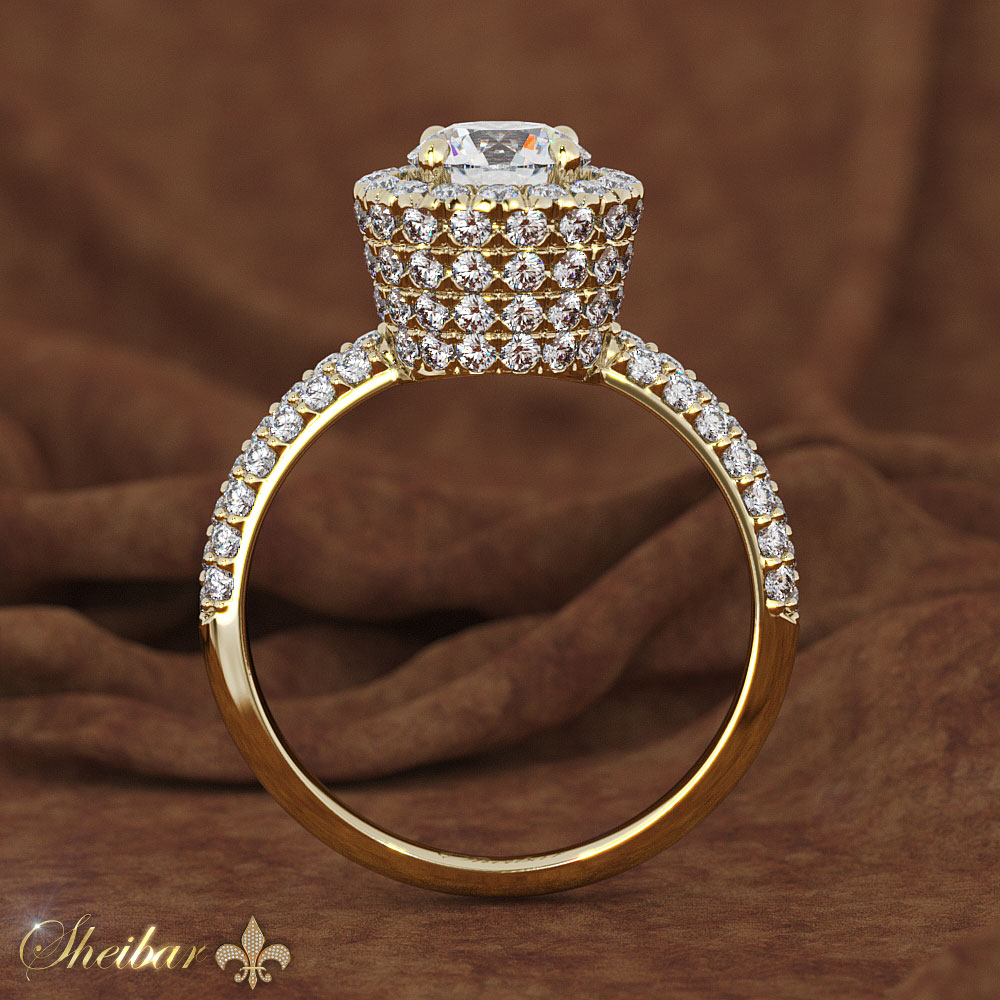 טבעת אירוסין ויהלומים טבעת גביע היהלומים- טבעת מיוחדת במינה, ברמת שיבוץ יוצאת מן הכלל כאשר במרכז הטבעת ישנו גביע מרשים משובץ יהלומים בצורה סימטרית ואחידה. במרכז יהלום0.50 קראט שהוא הדובדבן שבקצפת. סביב היהלום המרכזי בראש הגביע 128 יהלומים המקיפים אותו. בצידי הטבעת משובצים 3 שורות יהלומים למראה רציף ונקי של הטבעת. טבעת מיוחדת במינה שלא רואים על כל אחת.