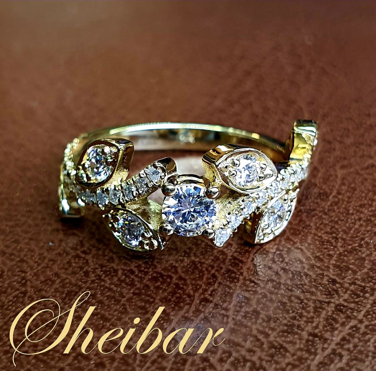 טבעת אירוסין ויהלומים מודל "גבעול מיני". טבעת מעוצבת ומרשימה ביופייה. הטבעת נעשתה במודל ממוחשב ומדויק כדי לשמור על קווים אחידים לכל העיצוב והעלים שבטבעת. טבעת מעוצבת מזהב מלא של 14K איכותי. הטבעת נעשתה בצורה של פיתול עדין כדי לדמות גבעול עדין של יהלומים כאשר ממנו יוצאים עלים עדינים ויפים. במרכז ראש הטבעת משובץ יהלום מרכזי שנראה כמו פרח עדין ויפה ומסביבו עלים עדינים ויפים. טבעת מעוצבת ויפיפייה!