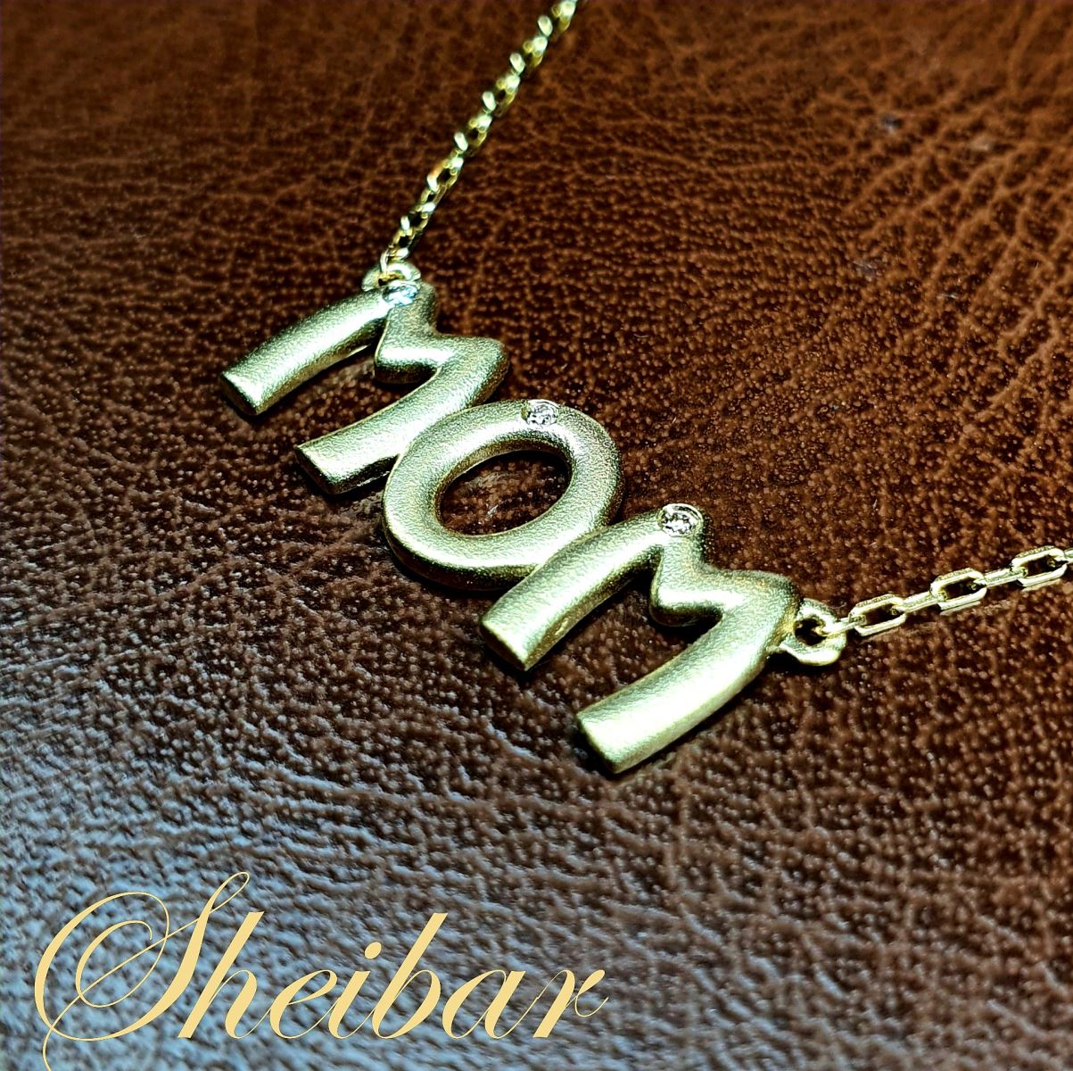 שרשרת תליון MOM. תליון שנעשה במודל במיוחד לתליון. התליון עצמו עשוי זהב 14K וזהב איכותי ומלא ללא חללים בזהב (איכותי מאוד). על כל אות משובץ יהלום איכותי ויפה (ניתן להוסיף יהלומים לפי בחירה ובהתאם לשינוי בעלות). מתנה מושלמת לכל אישה!