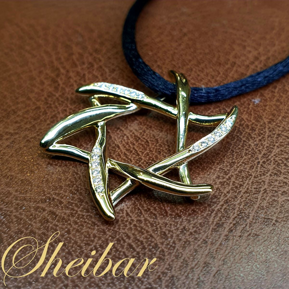תכשיטי יהלומים לגבר- תליון מגן דוד מעוצב. תליון שנעשה בעיצוב מיוחד של הזהב. ביציקה מיוחדת ולא סימטרית כדי לתת עיצוב מרשים לתליון. על גבי 3 צלעות של המגן דוד משובצים יהלומים לבנים לגמרי ונקיים. שרשרת שרוך מיוחדת וחזקה עם סוגר זהב צהוב 14K. מתנה יפיפייה לגבר!
