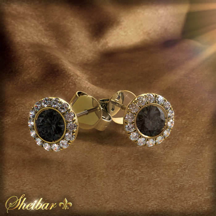 Adi earrings, amazing diamond earrings, delicate and high quality in a round design. A delicate and comfortable placement for each ear, with the back of the earrings allowing light to allow the diamonds to spark at the maximum level, as well as comfort. At the center of the earring can be seen a special black central diamond, while surrounded by small diamonds, white and delicate. Between the main diamond and the small diamonds, a smooth and delicate gold stripe separates them and emphasizes every part of the jewelry. The contrast between the white diamonds and the black diamond at the center of the jewelry gives a very prominent emphasis to the great diamond and thus gives it great uniqueness. Fine and beautiful earrings
