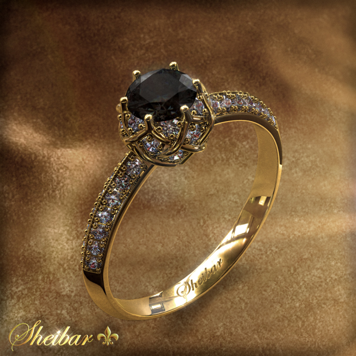 BLACK KORONNA - Special artistic design. A ring on its hoop can be seen in the arrangement of two rows of fine, delicate diamonds embedded in a "pooh" which is done in a delicate and high quality to preserve the beauty of the jewelry, thus separating the two rows of diamonds to highlight each line in particular. In addition, all around the head of the central diamond can be seen additional combinations of diamonds "zigzag" shaped around the delicate curly gold threads that separate each diamond and diamond, thus emphasizing each and every one of them, which strengthens the head of the ring as well as the central diamond. When you get to the top of the ring you can see the most impressive thing in the ring which is the central diamond and the centerpiece of all diamonds. The diamond is a large black diamond. Thanks to all the crown and small diamonds around, the central diamond is outstandingly and will be seen by everyone