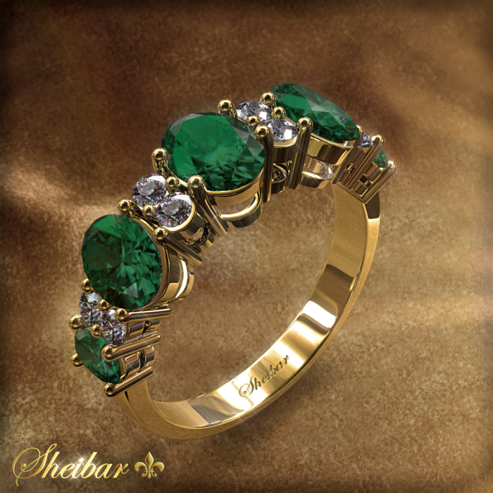 ALMAT HEN -an unique ring. You can see first and foremost the style of placement and the main stones in the jewelry. You can see about 5 main stones embedded in "Emerald" gemstones, which are first made from the sides, and towards the top of the ring the size of the stones increases until you reach the ring center where you can see the largest and most impressive stone. Precise and impressive placement work, while among all the five main stones can be seen as 2 diamonds that separate each of them and thus gives full emphasis and the maximum heart junction to each stone in itself. The work of finishing and polishing is impressive and beautiful. Undoubtedly a unique piece of jewelry ...! (You can order in advance to fit all types of gems)