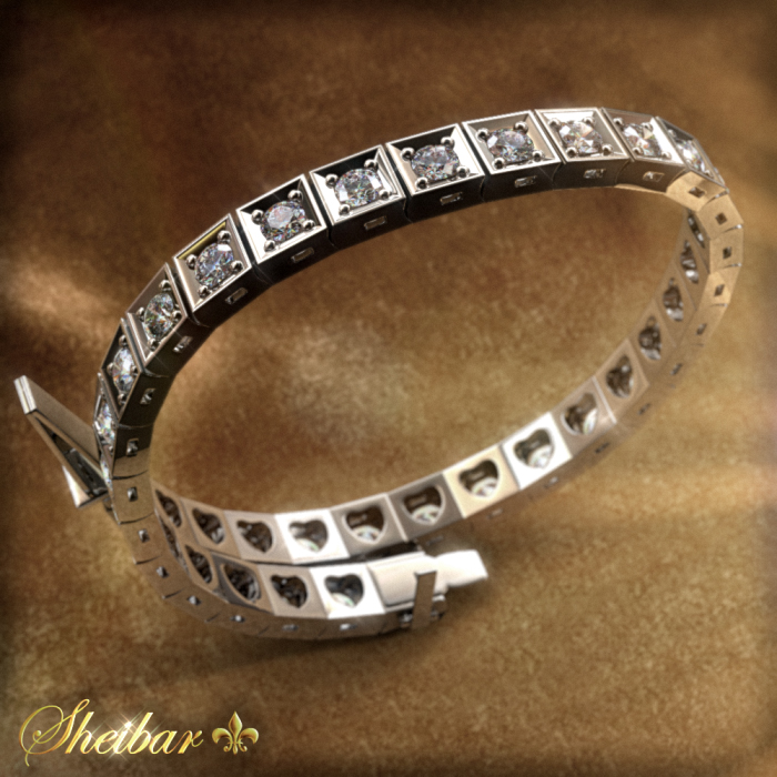 4 carat square tennis bracelet - A tennis bracelet studded with diamonds all around it . this bracelet is one of the most admired and beloved jewelry for women, because it is all studded with diamonds and undoubtedly has a very impressive presence. The bracelet is made of a vertebra, each of which is studded with a fine quality diamond. Around each diamond there is a smooth gold frame that adds to the size and presence of the jewel and to the sense of diamond size. A prestigious and impressive bracelet