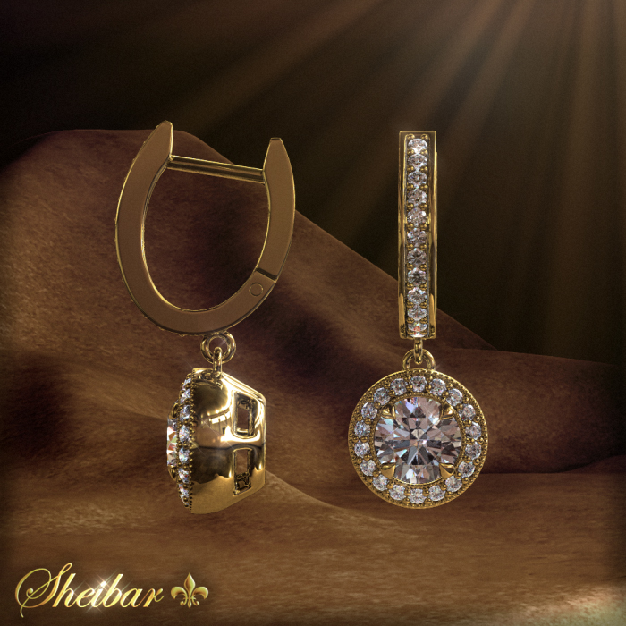 An impressive and prestigious earring that combines 2 styles of earrings. The first part is a "U" stud that sits on the ear, with delicate, beautiful diamonds embedded throughout. While in the second part you can see a hanging part of a gold frame around which there are small diamonds, centered on a large and impressive central diamond. The entire earring is actually studded with diamonds, giving a sparkling and impressive effect to the jewelry. The work of goldsmithing and placement was done at the highest level, in order to pay between these two types of earrings into one beautiful and impressive piece of jewelry.